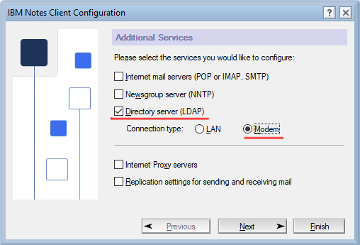 Remove LDAP modem connection option in Notes Configuration Setup.