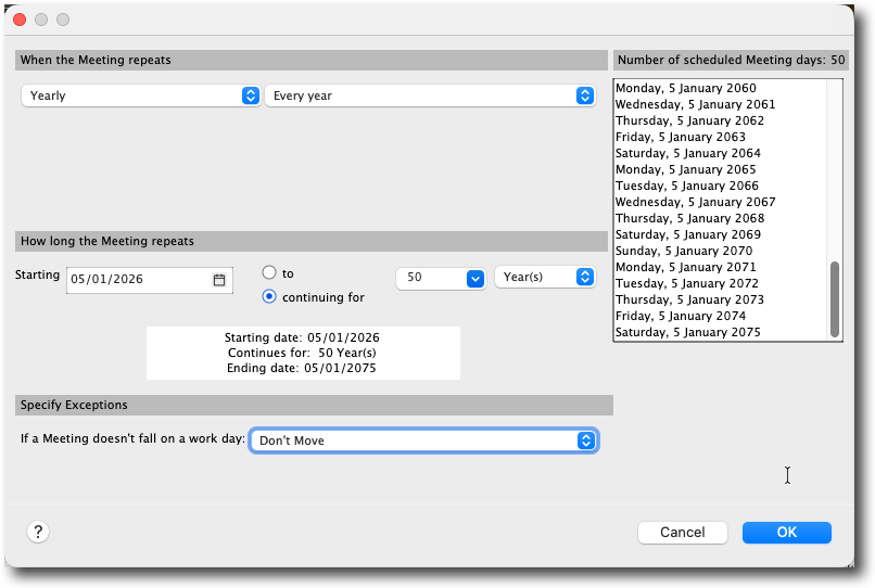Only the the drop down list is limitatet to 10 years.