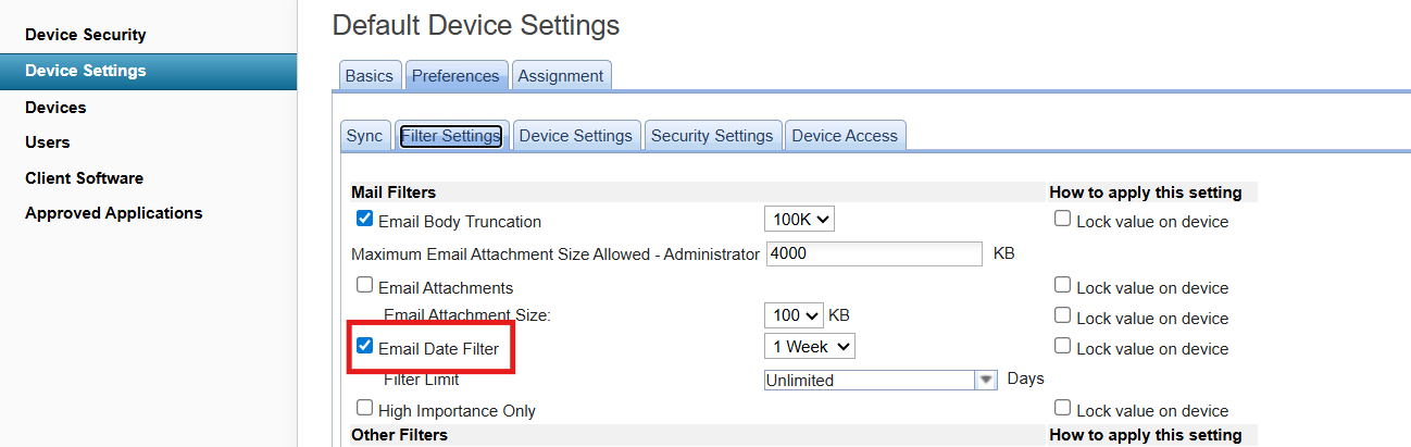 However, the customer requirement is to have these filter settings applied to the Exchange ActiveSync protocol as well.