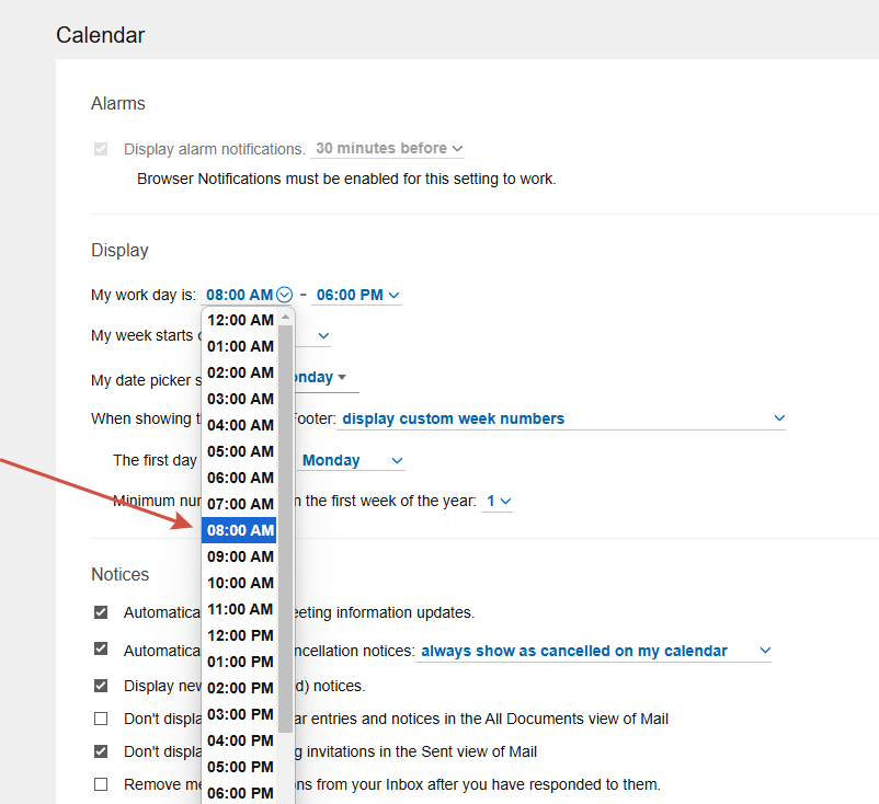But many users work from 8.30 or 9.30. There is no option to select such time.